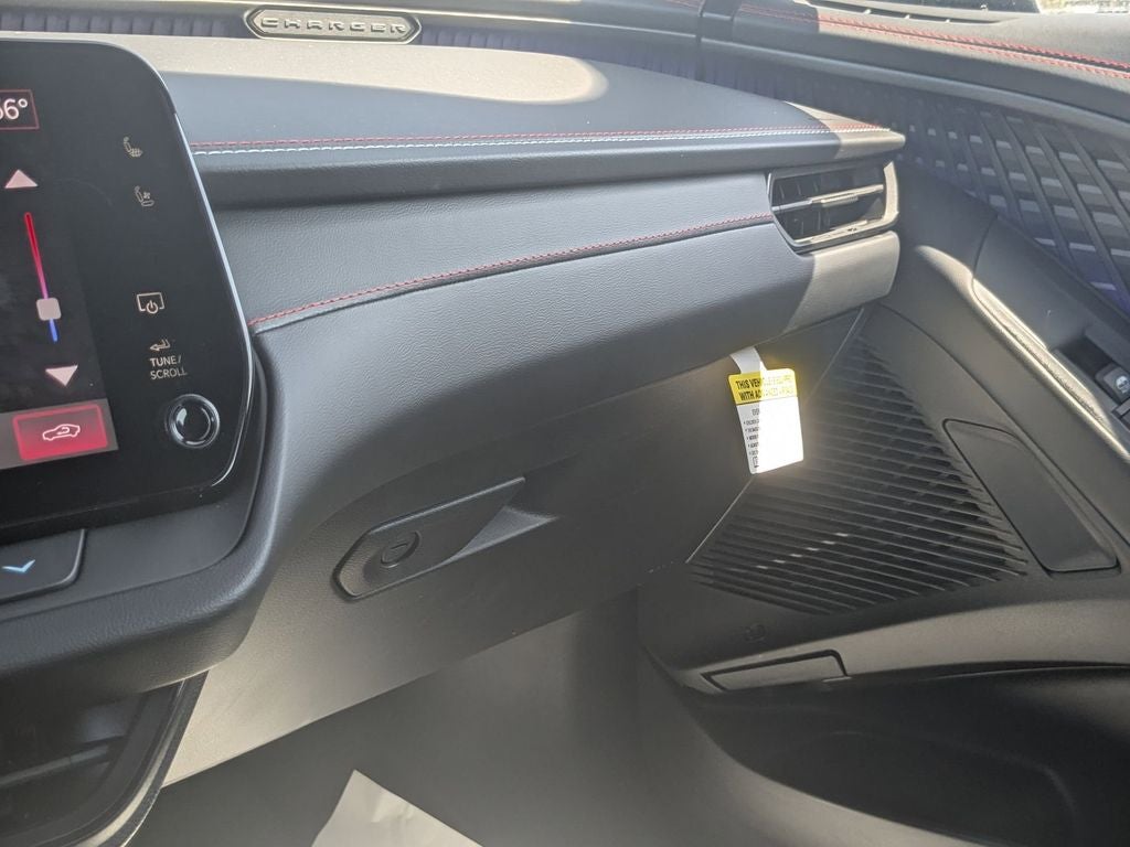 Step inside this Charger and you'll be greeted by a luxurious and tech-savvy cabin, featuring premium leatherette seating, a 12.3-inch touchscreen display, and a host of advanced connectivity features. The Scat Pack Plus package adds even more premium amenities, including a head-up display, ventilated front seats, and a powerful 18-speaker audio system.